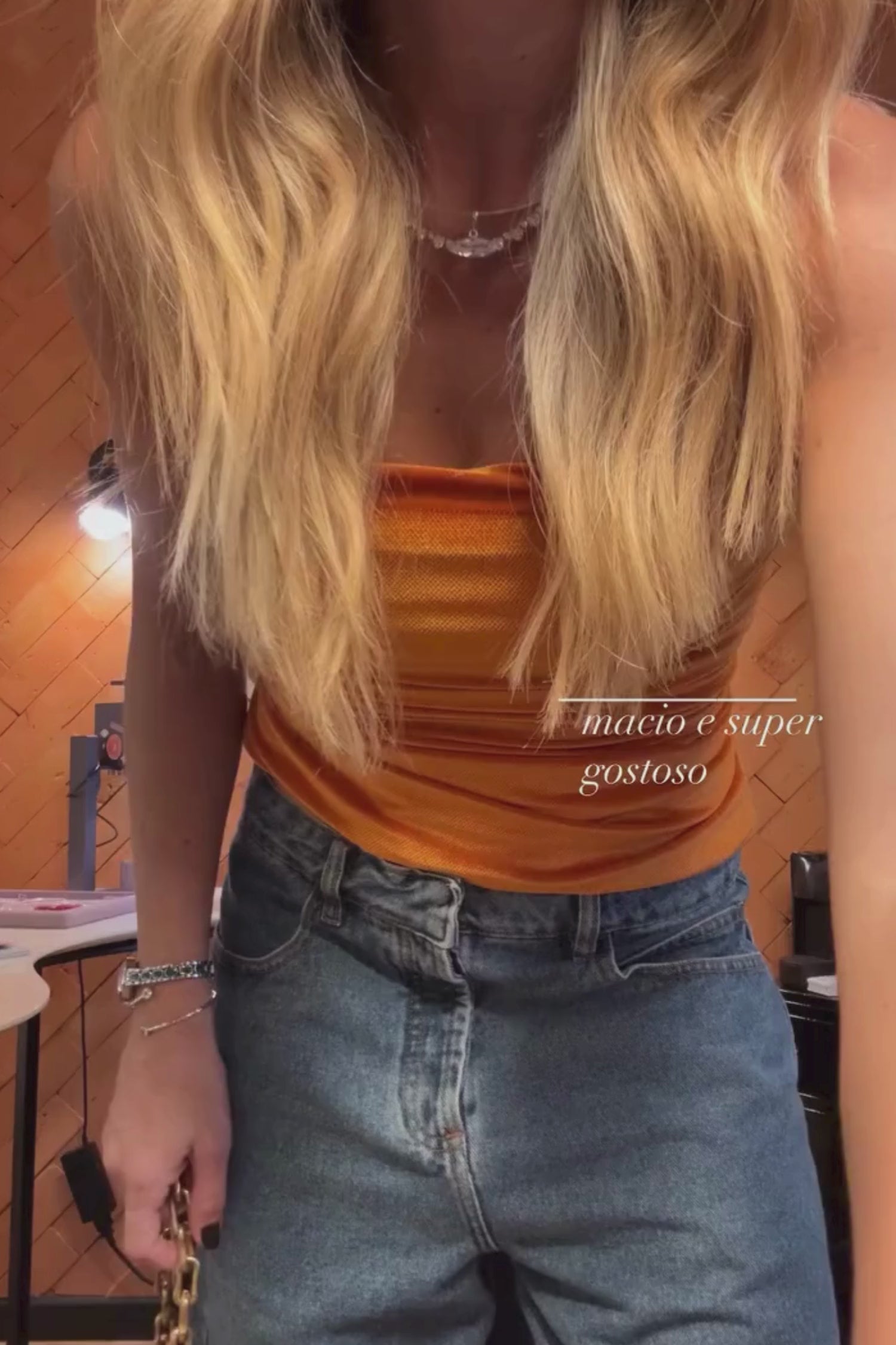 - Blusa tomara que caia em veludo cor laranja